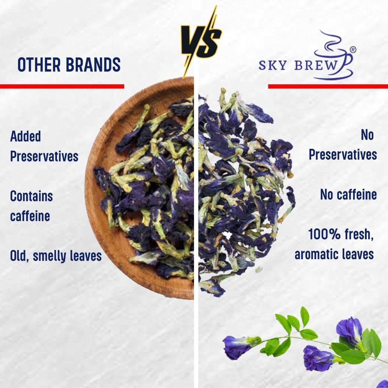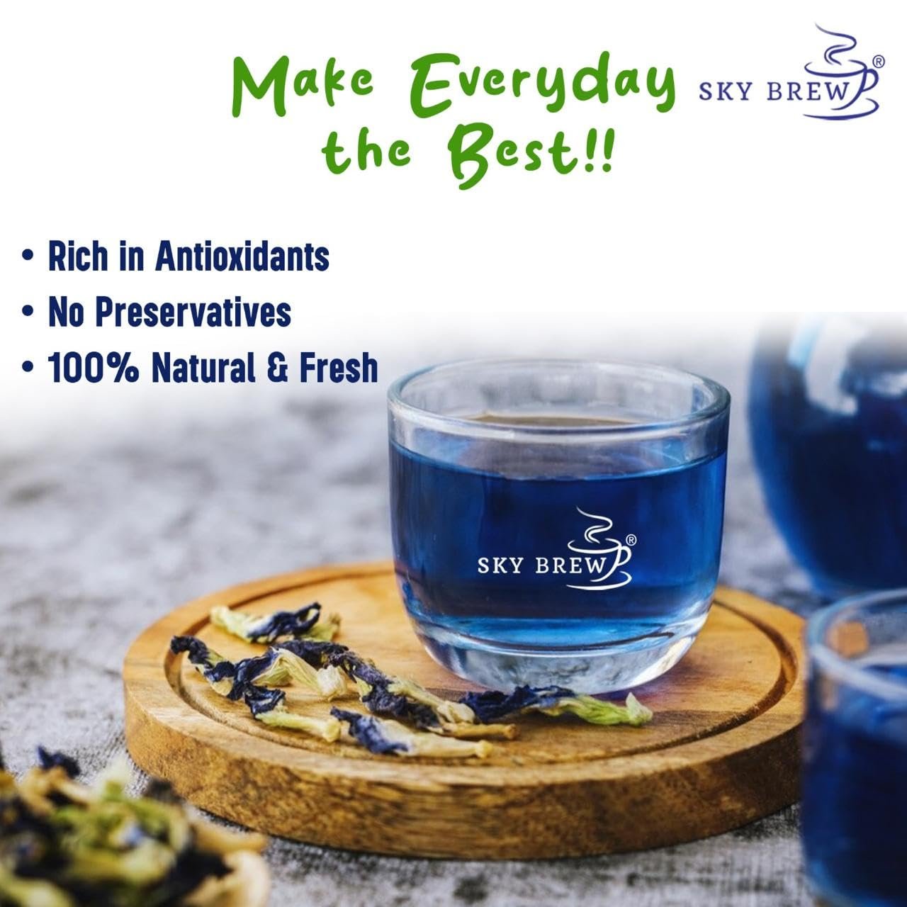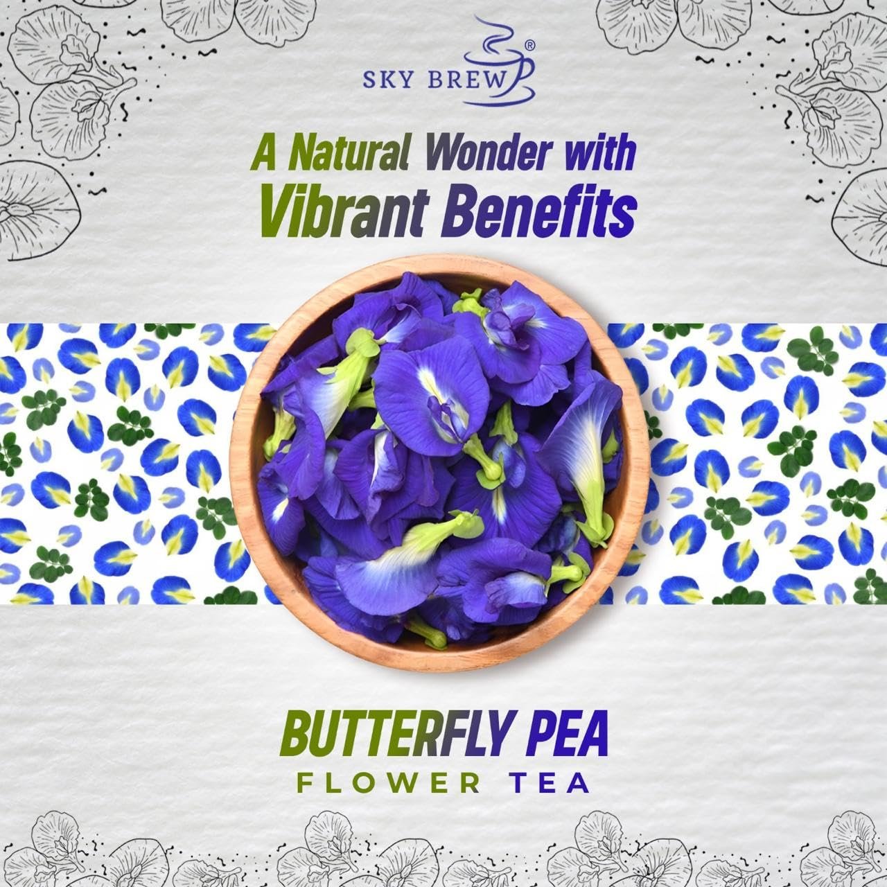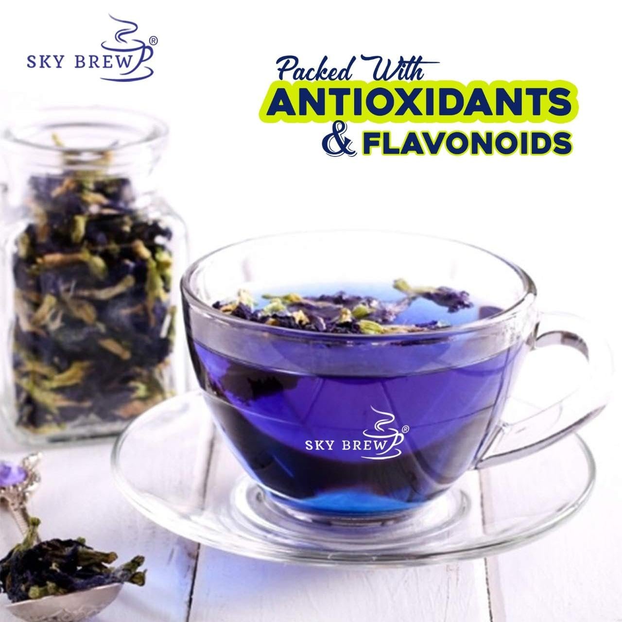 SKY BREW Butterfly Pea Flower Tea – 30gm – 15+ Cups | Super Antioxidant | Caffeine Free | Aparajita – Shankhpushp – Clitoria Ternatea | Flower Based – Herbal Tea | Reusable Pet Jar