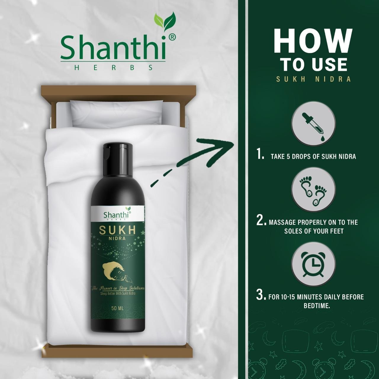 SUKH NIDRA- Experience tranquil nights with SUKH NIDRA Foot Massage Oil, a natural sleep-promoting solution designed to help you unwind and relax.