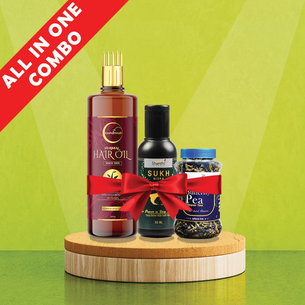 All in one combo – SUKH NIDRA, SKY BREW 30gm, Keshamruth Herbbal Hair Oil